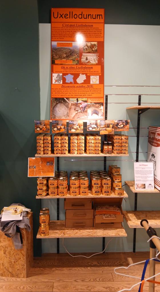 Vente sur place des produits "Les saveurs d'Uxellodunum" pour ramener un peu des traditions culinaires gauloises chez soi !